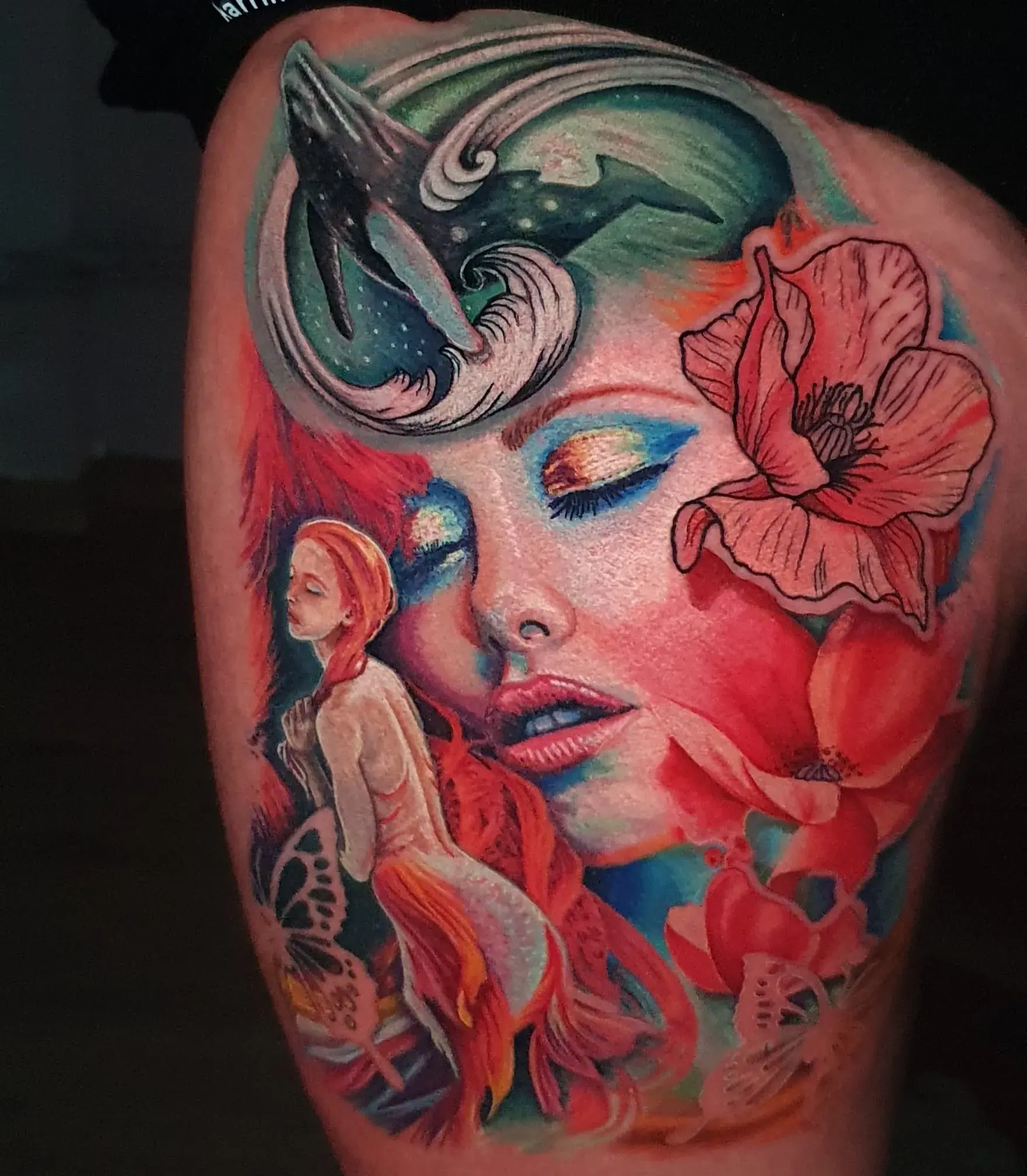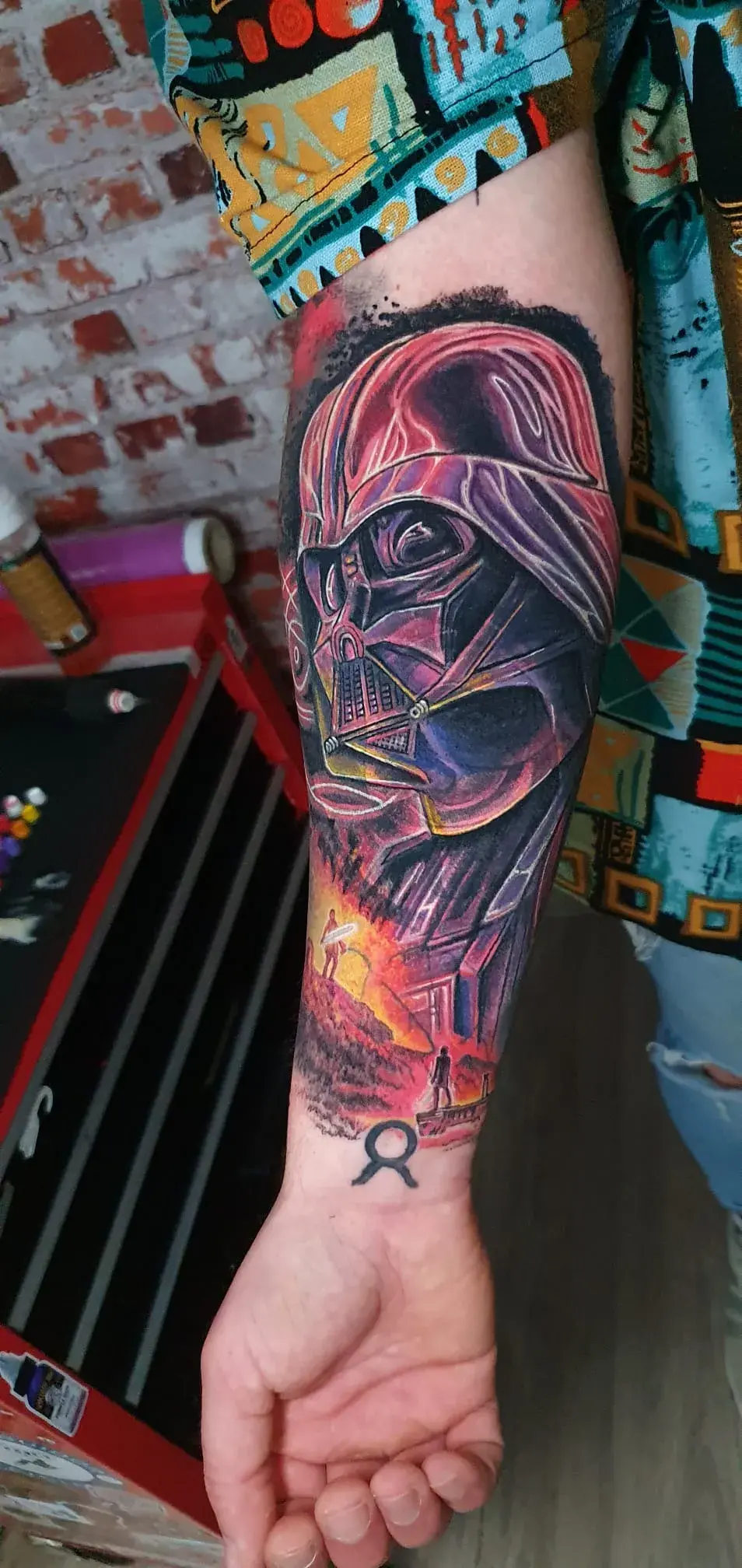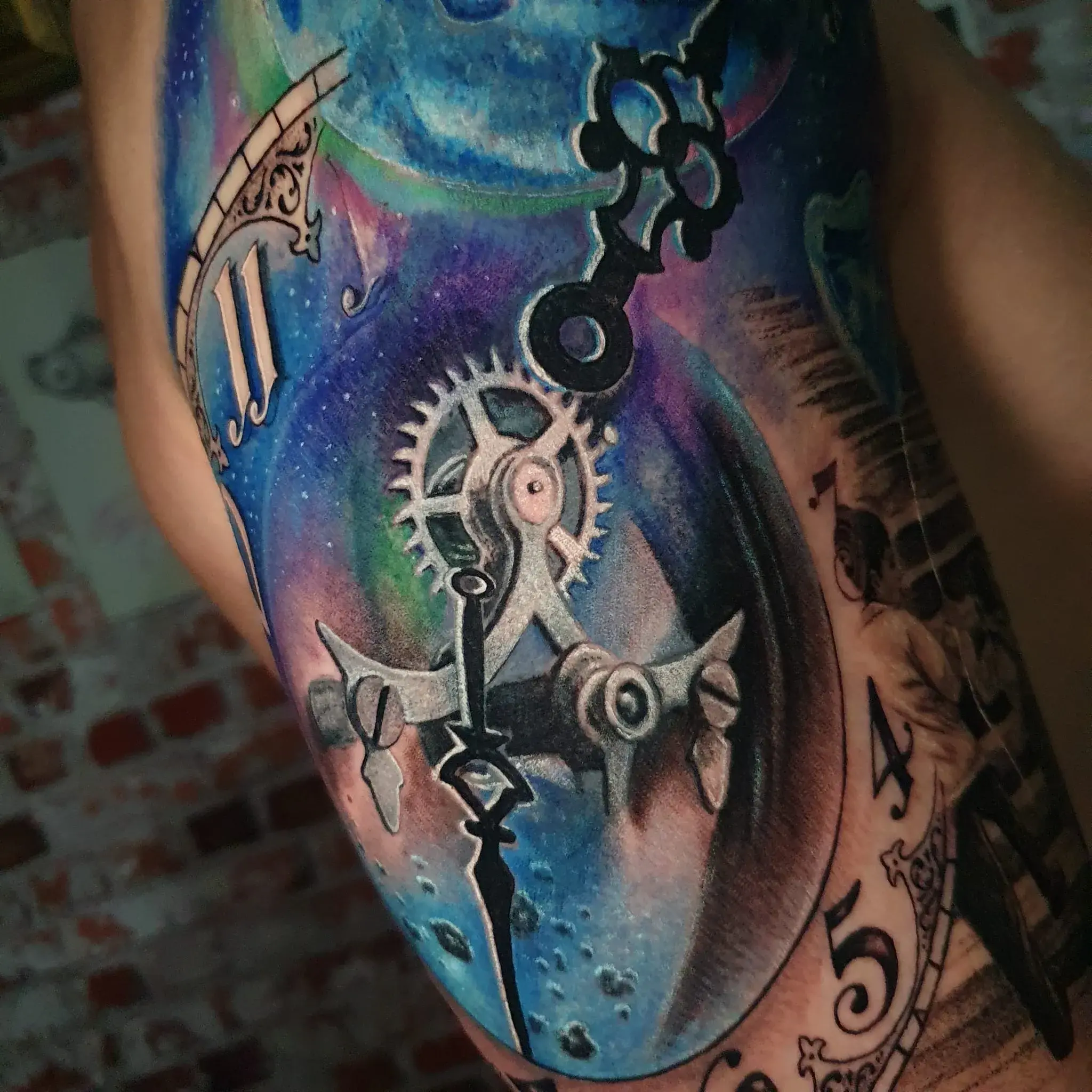Como apasionado del color, su estilo preferido es el full color, aunque también realiza otras técnicas como el dot work o el black & grey.